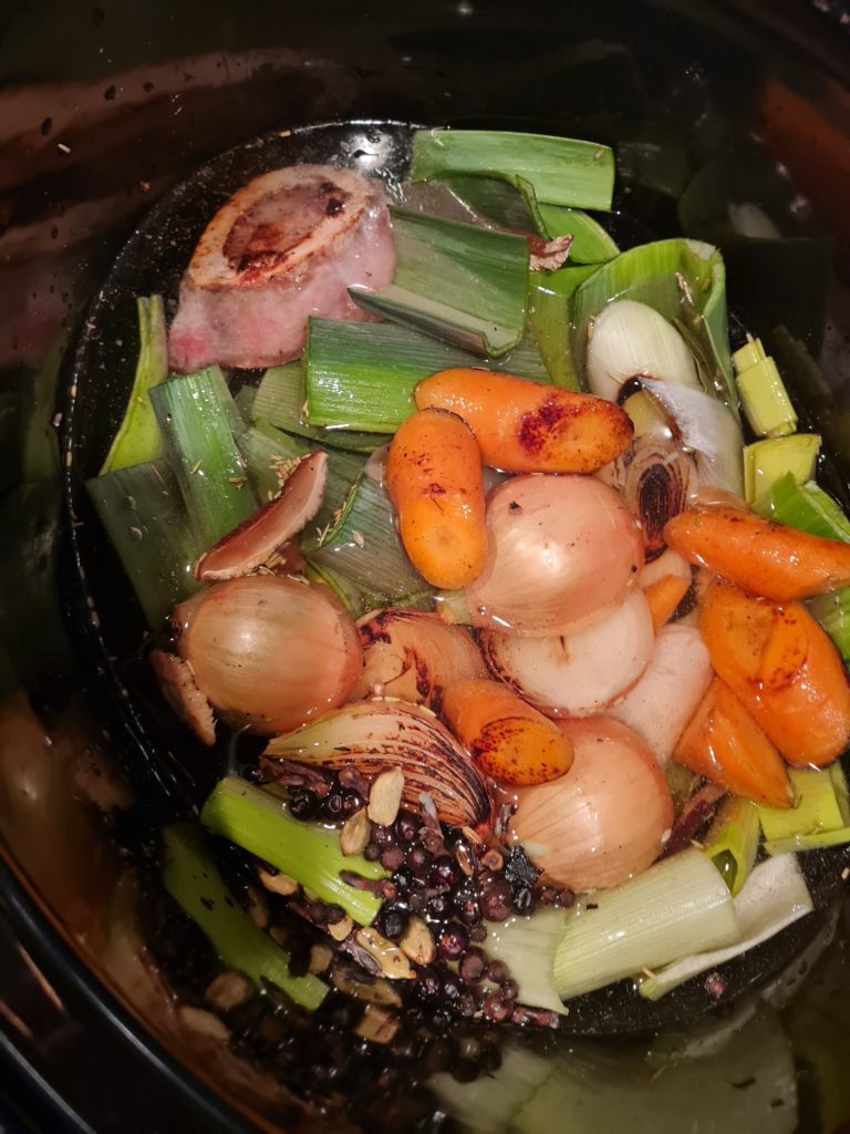 Es ist ein Powerfood – strotz vor Vitalstoffen, die eigentlich jeder Körper braucht. Sollten vegetarisch/vegan orientierte Leser jetzt Stirnrunzeln bekommen ….. das Prinzip verwende ich auch für Gemüsebrühe, dann nur eben ohne Knochen. Gemüsebrühe kann ich aber noch mal separat erläutern.