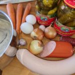 Vorher gibt es allerdings noch einiges zu tun. Das wichtigste an dem Salat ist, dass er ohne Mayonaise, dafür mit Rinderbrühe, und warm serviert wird.